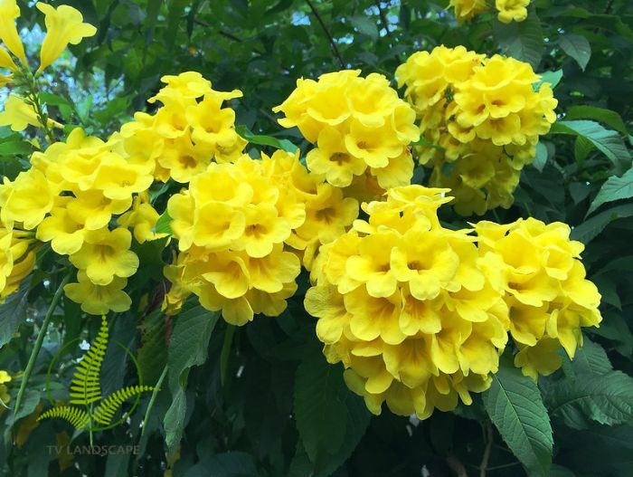 Cây có nhiều hoa, màu vàng óng rực rỡ với tán lá cao tạo sự độc đáo và lạ mắt. Do đó mà loại cây công trình này rất được ưa chuộng trồng tại các khu đô thị, biệt thự, trước ngõ…. Khi vào mùa trổ hoa bạn sẽ thấy cây như một khối hoa khổng lồ và nổi bật.