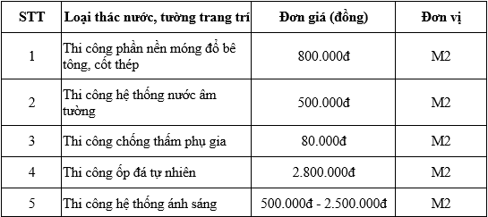 2.9. Construction price of decorative wall waterfall