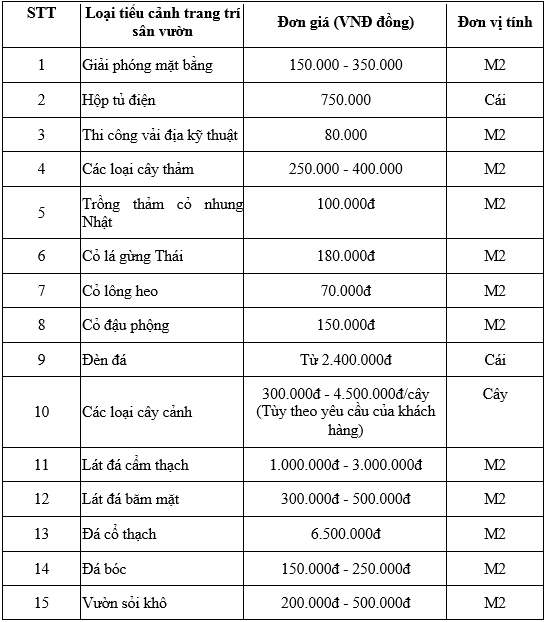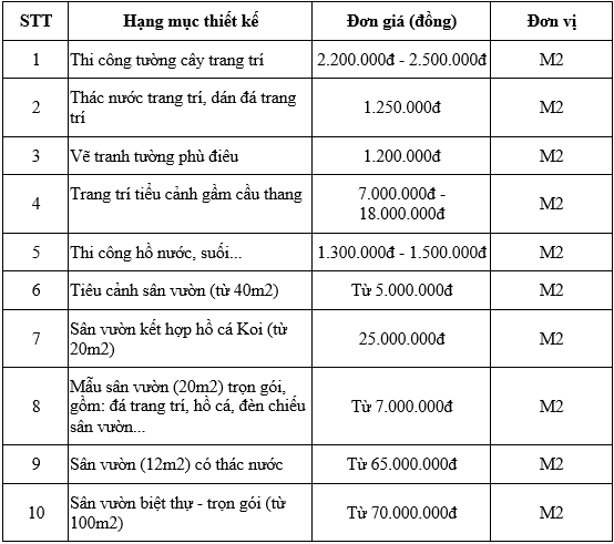 Above are the detailed costs of designing and constructing all garden landscape items at TV Landscape. Hopefully, the above sharing will help everyone have a reference price to choose the most suitable construction package for their living space.