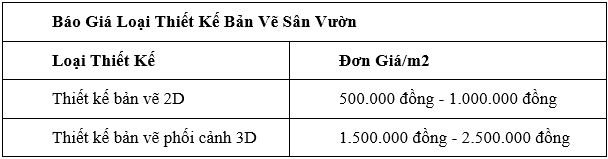 For example A landscape project with an area of 500m2, investment rate of 3.5 million, and simple design corresponding to 92,000 VND.